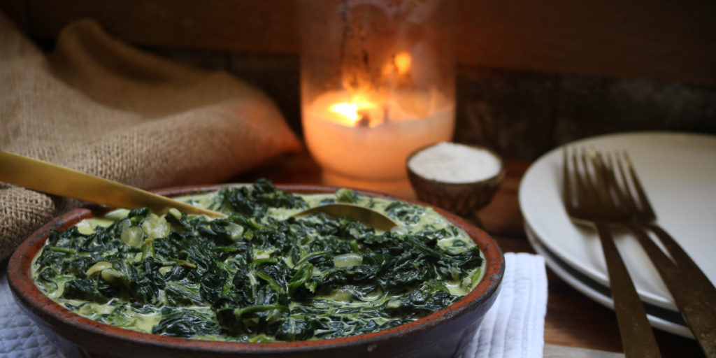 Try our low carb and very creamy spinach recipe. It’s healthy, nutritious, and perfect as a side dish for Thanksgiving dinner. Fresh spinach is ideal, but frozen or canned spinach will do if you can’t find any. You will need to adjust your preparation technique though to ensure excess water is removed before cooking.