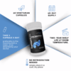 We use an Oxyfree® desiccant to absorb oxygen and remove any residual moisture from inside the bottle, meaning we can reduce oxygen levels to 0.01% for the entire lifespan of the product.