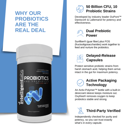 Probiotics can also help reduce the symptoms of bowel conditions like celiac, Crohn’s, and Irritable Bowel Syndrome (IBS).