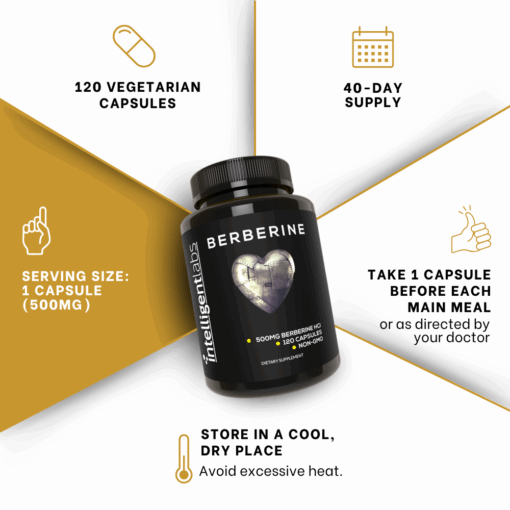 Berberine helps lower blood glucose levels, which improves insulin sensitivity and reduces inflammation.