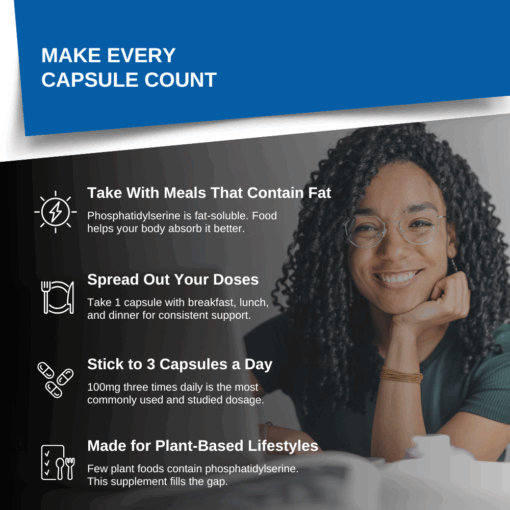 It’s important to judge supplementation levels based on your own personal requirements. This is especially true for people looking for phosphatidylserine to help reduce high cortisol levels to help with stress. In scientific studies, it was found that people with high cortisol levels may need more than 300mg per day to make a difference.