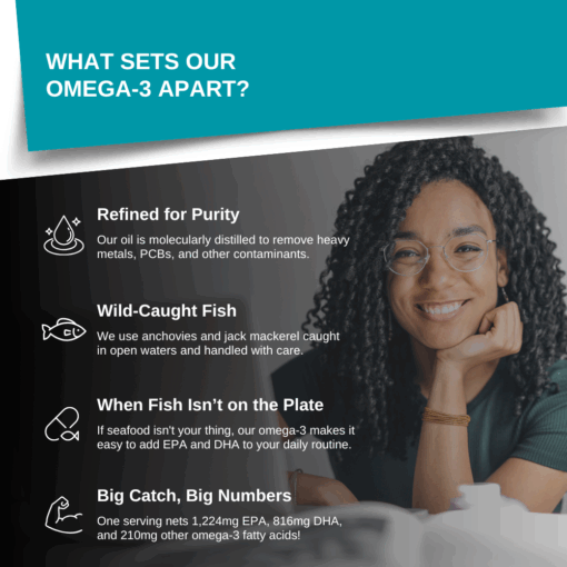 Our Omega-3 supplement is manufactured at a NSF GMP-certified facility in the United States.