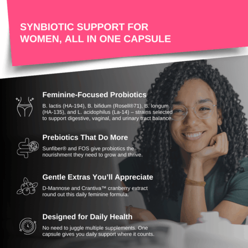 Our probiotics are beneficial for both women and men, but this one is designed to support women’s health.