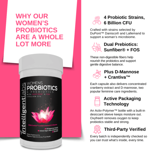 Intelligent Labs Women’s Probiotics also have 4 different strains of probiotics: