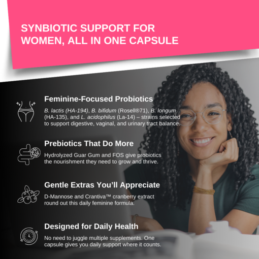 • 4 patented probiotic strains chosen for gut and women’s health